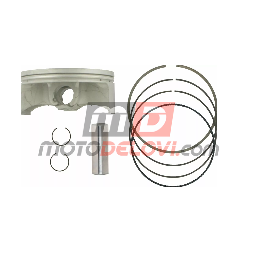 Komplet uključuje klip, prstenove, čivlje za klipove i sigurnosne prstenove (circlips).