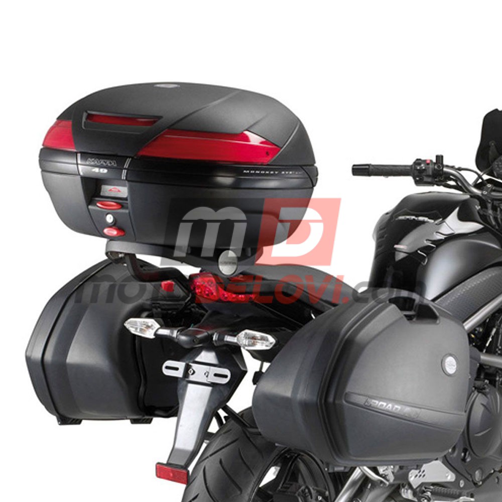 Na ovaj nosač za kofer mora se montirati i tipska Kappa Monokey® ploča KM5, KM7,M9A,M9B, Monolock® ploča KM5M ili Givi Monokey® ploča M5, M7, M9A, M9B ili Monolock® ploča M5M.